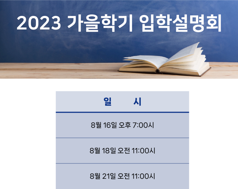 2023 가을학기 설명회 일정 안내입니다.